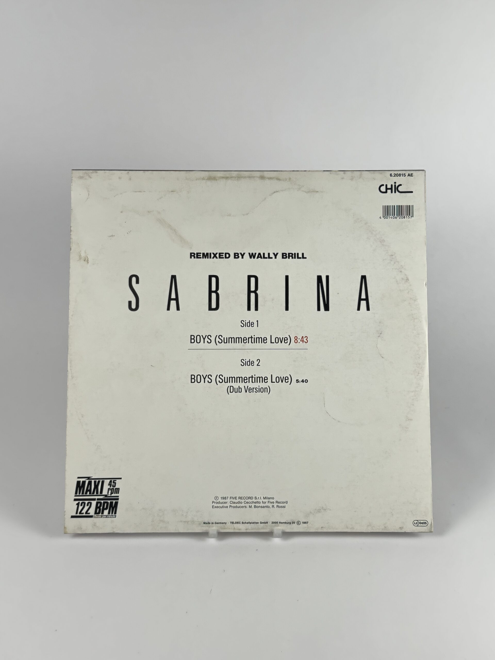 Sabrina – Boys (Summertime Love) Remixed (Chic – 6.20815 AE, Germany 1987, 12″ Maxi-Single, 45 RPM). Italo-Disco-Kultmaxi mit dem Sommerhit „Boys (Summertime Love)“ in der 8:43-Minuten-Remix-Version, remixed by Wally Brill, plus Dub-Version auf der B-Seite. Perfekter 80s-Dancefloor-Füller mit typisch knalligem Synth-Sound, großem Refrain und maximalem Nostalgie-Faktor – ideal für Italo-Disco- und 80er-Partysammlungen.