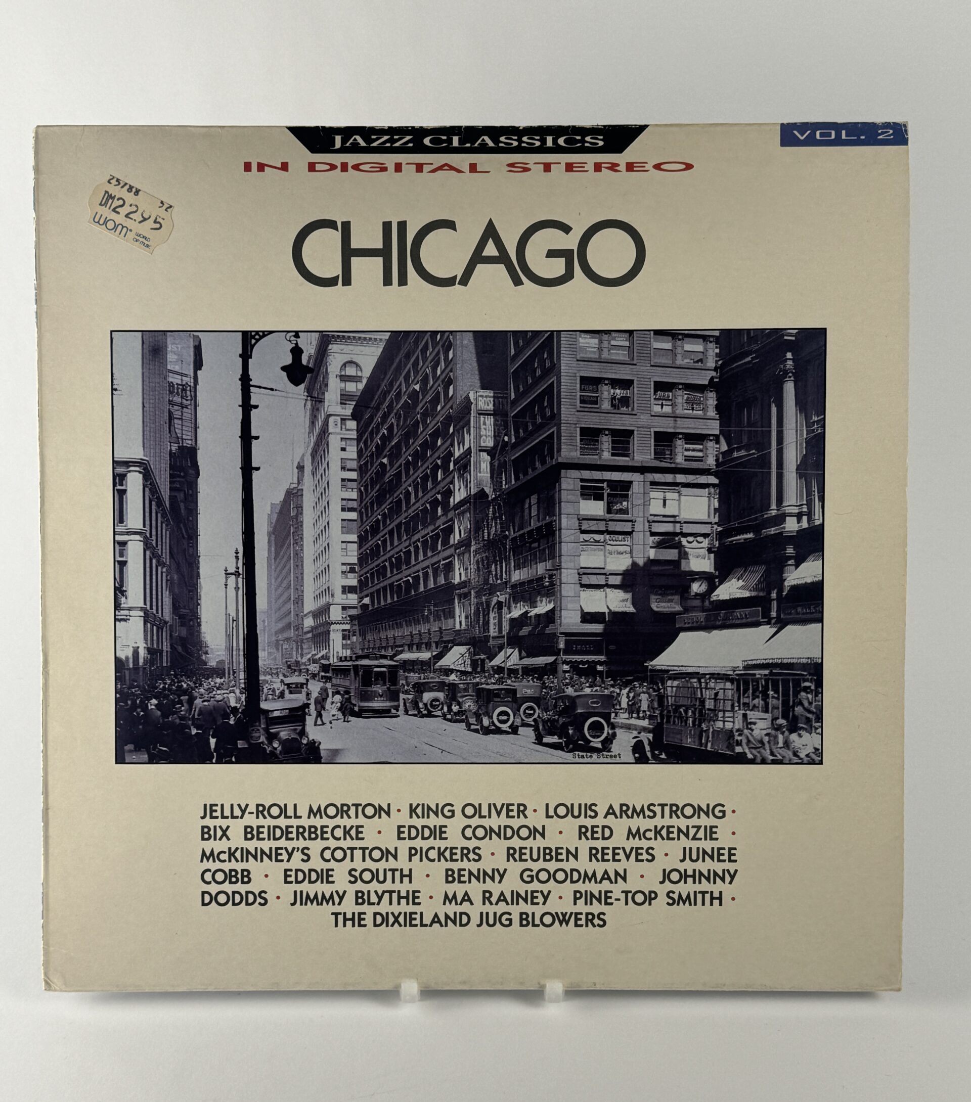 Digitale Jazz-Compilation von 1986 mit Chicago-Legenden wie Jelly Roll Morton, Louis Armstrong, Bix Beiderbecke & Benny Goodman auf einer LP.
