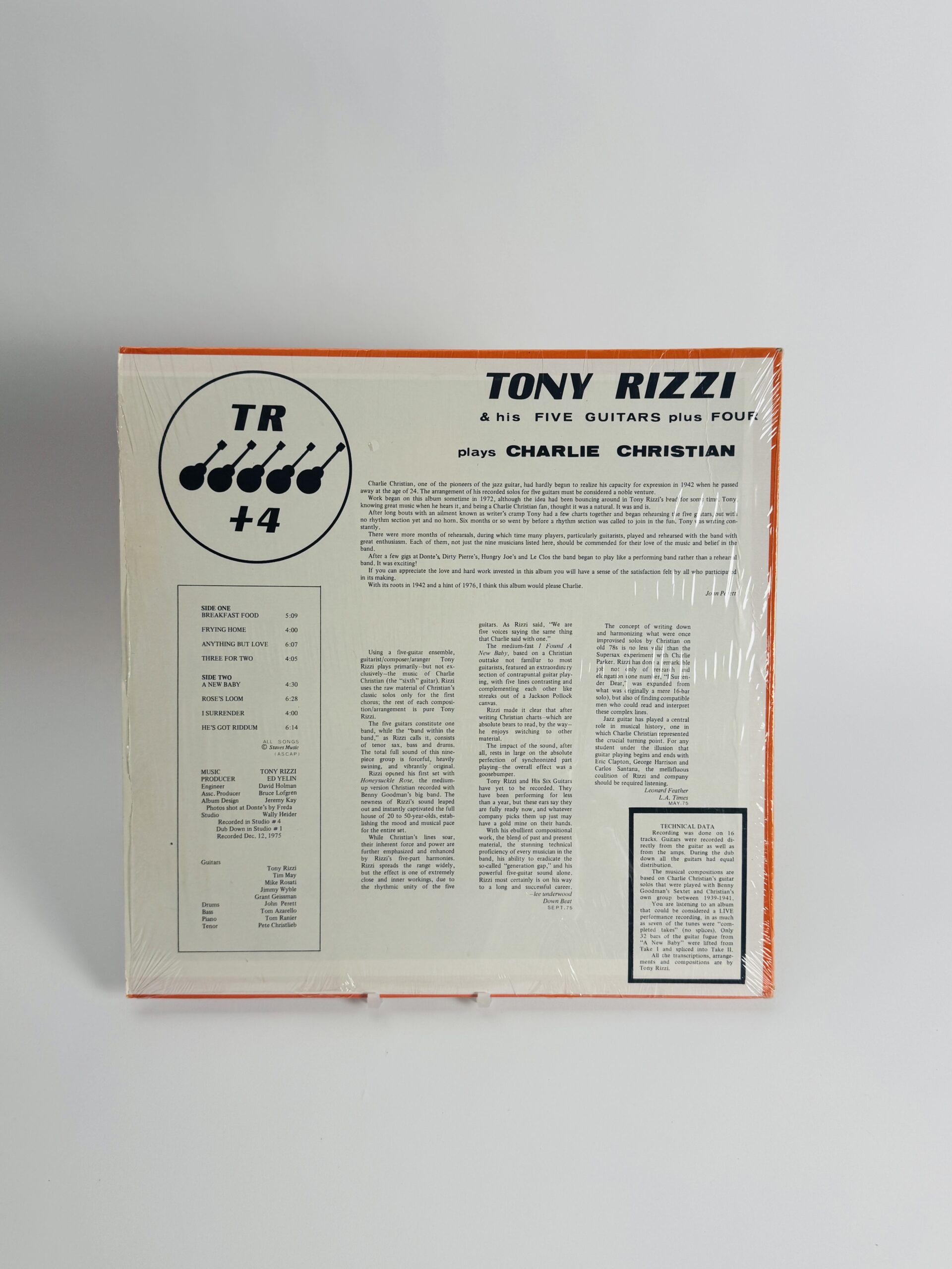 Seltene Jazz-LP der 70er: Tony Rizzi interpretiert Charlie Christian mit fünf Gitarren plus Ensemble – warmer West-Coast-Swing für Gitarrenfans.